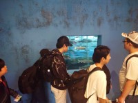 次の見学地は富士湧水の里水族館。淡水に住む生き物たちに興味深々です。
