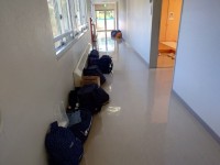 荷物整理、寝具をきれいにしまい、掃除機をかけ清掃です。これから来るBグループが気...