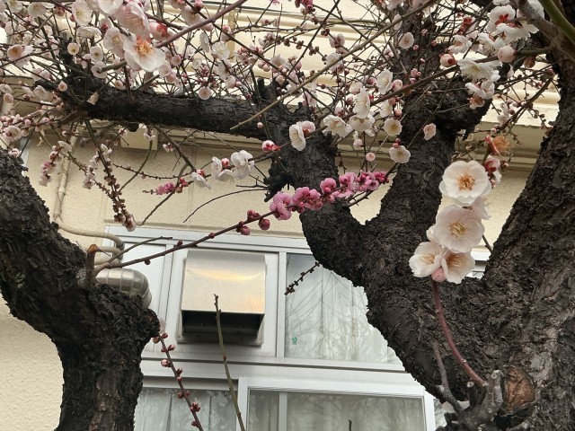 校庭に梅の花が咲き始めています。職員室近くの木は、1本の木から赤と白の花が咲いているのに、お気づきでしょうか。これは源平咲きと呼ばれる咲き方で、平安時代の源平合戦で源氏の旗印が白、兵士の旗印が赤に由来...