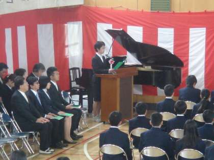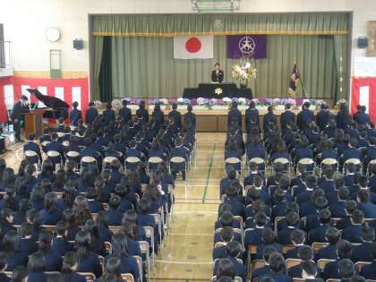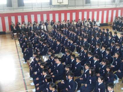 入学式の様子です。担任の先生に名前を呼ばれたら、緊張しながらもしっかりとした返事をすることができました。