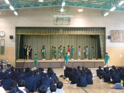 こんにちは。サッカー部です。部員数は、3年生11人と2年生13人で活動しています。顧問の先生は、社会科の菅野先生と英語科の北坂先生です。コーチは岡本コーチとキーパーコーチの塩澤コーチです。これは、他の学校よりも充実したスタッフ陣です。