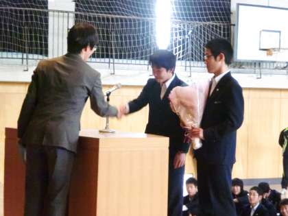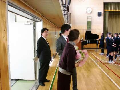 2012年度で緑丘中を去った先生方の「最後の授業」が行われました。今までを振り返ったお別れの挨拶ではなく、まだまだ教えきれなかったことを、時間の関係で少しだけになってしまいましたが、伝えに来てくれました。放課後も生徒に囲まれ生徒との関わりの深さが感じられる離任式でした。