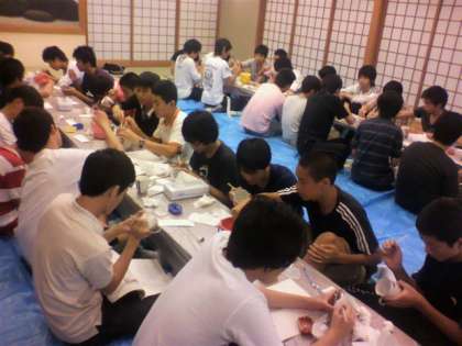 予め学校で下絵を描いてきましたが、実際に描き始めると細かすぎて難しかったり、逆に簡単すぎて時間をもて余したりといろいろな人がいました。出来上がりの作品は学発で展示する予定なので楽しみにしていてください。