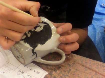 清水焼の絵付け体験をしました