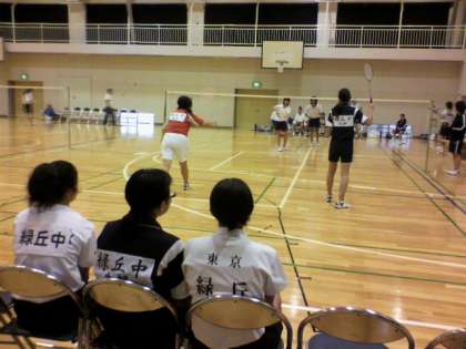 10月4日日曜日に三宿中学校を会場に世田谷区のバドミントン新人大会第1組の試合が行われました。参加予定だった玉川聖学院がインフルエンザで欠場したり、緑丘中も参加予定者の内2名が体調不良で休んだりと、大変な大会でした。大会前の練習もインフルエンザなどの影響で約3週間ほとんど何もできない状態でしたが、選手はとてもよく頑張りました。結果は、団体戦が一勝三敗 個人戦が一ペアが棄権、あとの二ペアは一試合勝って、次の試合で敗退しました。充分に満足のいくものではありませんでしたが、次回の大会へ向けての課題がよく分かり、この経験を活かせるように明日からの日々の練習を頑張っていこうと誓いました。