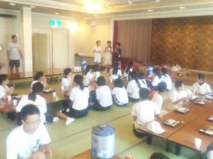 午前中の活動を終え、昼食をいただいた後、閉園式を行いました。宿泊の方からご挨拶をいただき、代表生徒のお礼の言葉の後、全員でお礼を言いました。大変お世話になりました。ありがとうございました。