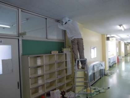 夏季休業中を利用して、学校では、施設の補修等を行っています。