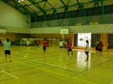 バドミントン部は、夏休み中の6日間、学び舎小学校の八幡山小学校の体育館をお借りして、練習を行わせていただいています。8月8日の八幡山小学校での練習の様子です。