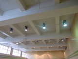7月上旬から行われました格技室の天井撤去工事も無事終了しました(写真右)。