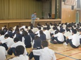 朝礼後、一年生は、移動教室に向けての学活を学年で行いました。