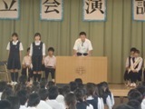 3校時、生徒会役員選挙のための「立会演説会」が体育館を会場にして行われました。