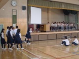 また、一年生を対象に始まった「いじめ防止プログラム」の内容である「いじめ防止ワークショップ」の第1回(全4回)が講師の先生をお招きして9日に行われました。(写真 右)プログラムを行う上での約束などを確認しながら進められました。