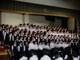 曲は、1年「明日へ」(写真 左)、2年「青葉の歌」(写真 中)、3年「証」(写真 右)でした。それぞれの学年にふさわしい歌声が、体育館中に響きわたりました。