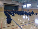 作成したしおりをもとに、3日間の概要の確認(写真 左)、集合時の整列の確認(写真 中)、写真隊形の確認等、本番に向けて、最終確認を行いました。