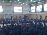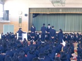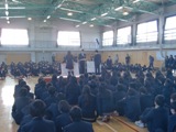 体育大会の応援の各組の1、2年生代表から、行事や部活動、委員会を通してお世話になった3年生に対するお礼やこれから迎える進路実現に向けての激励の言葉が述べられ、一人ひとりが考えたメッセージが送られました。その後、3年生の代表から1、2年生に向けて、お礼や今後に期待する内容の言葉が送られました。よりよい校風がこれからも引き継がれるであろうことを強く感じることのできた時間でした。