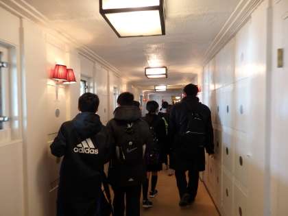 山下公園のチェックポイントを過ぎ、氷川丸を見学する班もありました。