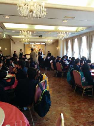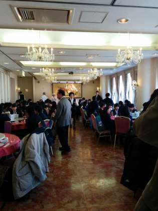 どのテープルも楽しい雰囲気で食事をしています。肉まん作り体験もしました。