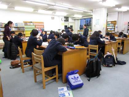 放課後、1年生の希望者向けに社会科補習教室がありました。生徒たちは、先生にアドバイスをもらい、地理・歴史の課題に一生懸命取り組みました。この補習教室は全7回あります。それぞれの苦手なところを克服できるよう頑張りましょう。