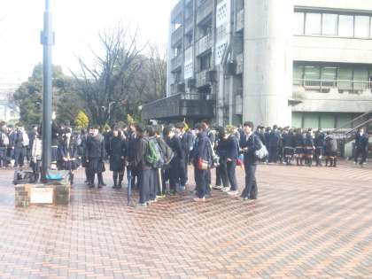 本日、合唱コンク−ルが開催されます。会場に入場前の練習の様子です。