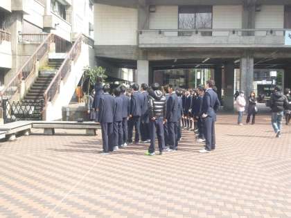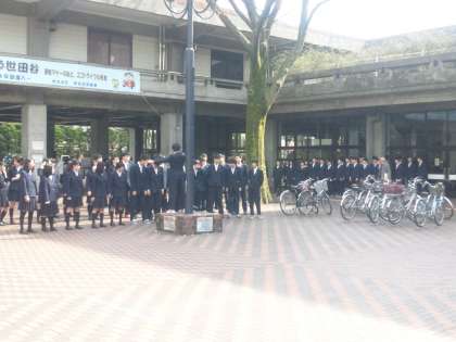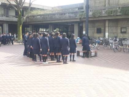 午前中の1、2年の発表が終わり、昼食を終えた3年生が、発表前の最終の調整をしています。区民開館前には、歌声が響きます。発表が楽しみです。