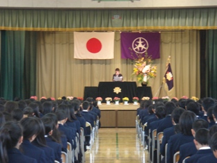 学び舎小学校の校長先生方や地域の方々をはじめとした御来賓の皆様、新入生保護者の皆様、在校生が、新入生の入学を祝福しました。新入生の一人ひとりが、夢と希望を実現するための中学校生活をよりよく過ごしてほしいと思います。応援します。