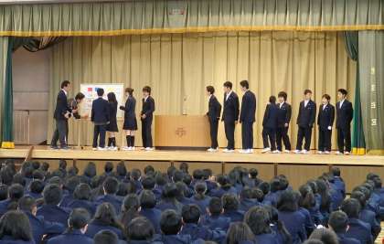 4月13日、全校朝会がありました。校長先生は、最近読まれた詩を取り上げられ、「これまででもこれからでもなく、今この時を全力で頑張ることが大切。」というお話をしてくださいました。このことを心に留めて生活しましょう。また、全校朝会の後、体育大会の色決め、兄弟クラス決めの抽選がありました。みんなで協力し、体育大会を盛り上げていきましょう。