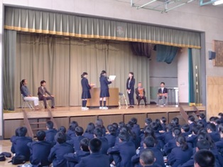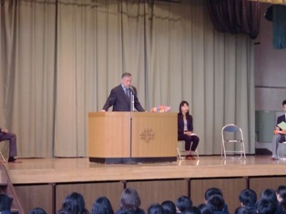 これまで緑丘中学校のためにご尽力いただいた先生方に、代表生徒から、お礼の言葉が述べられ、花束が送られました。先生方からは、生徒たちにメッセージをいただきました。大変お世話になり、ありがとうございました。