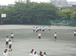 クラスでの練習が始まる前に、リレーや個人の練習に取り組む生徒が見られます。この後、これまでのように学年種目の練習がはじまり、校庭に掛け声が響いています。