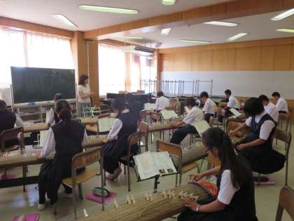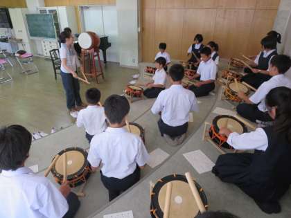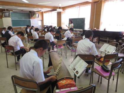 6月2日(火)に、1年生は、筝と和太鼓の演奏家の指導を直接受けました。プロの演奏する音の素晴らしさや技術のすごさに驚きながら、和楽器の演奏を楽しみました。日本の伝統音楽の良さを学べた貴重な時間となりました。