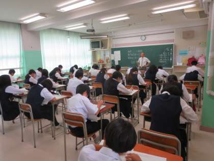 一年生にとっては初めての定期考査です。2、3年生にとっても大事な定期考査です。一生懸命に集中して取り組む生徒たちの姿が、どの教室でも見られます。生徒の一人ひとりが、これまでの学習の成果を十分に発揮することを期待しています。