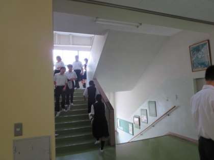 本日、4校時終了後、「地区ごとに集まり、災害時に生徒が協力して安全に帰宅できるような意識を高める」ために、集団下校訓練(地域班編成)を行いました。
