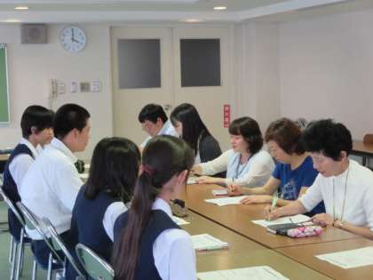 7月2日(木)に本校ミーティングルームにおいて、生徒会と青少年委員の方との交流会が行われました。