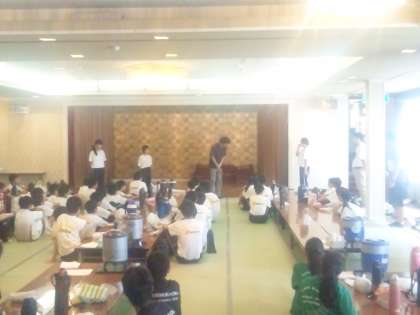 開園式では、代表生徒の挨拶、宿舎の方からのお言葉、全員で宿舎の方々へのあいさつをしました。昼食をとり、準備をして、練習になります。