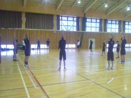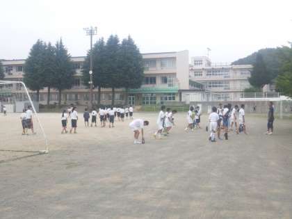 部活動合宿2日目の朝の様子です。起床後、部ごとに近隣小学校の校庭、松本市野球場、練習会場で身体を動かします。