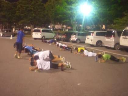 夕食後、松本市野球場外周のランニングコ−スで活動する様子です。
