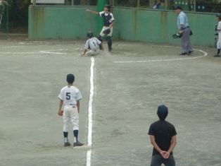 野球部の生徒達は、朝早くから会場の準備等を行い、第2試合で新チーム初めての公式戦に臨んでいます。2回の表 攻撃をつなぎ先制しました。
