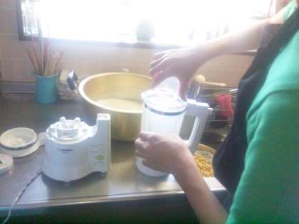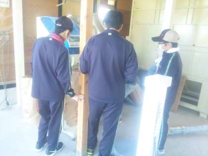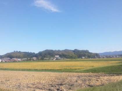青空と稲穂の黄金色が印象的です。爽やかなかぜが吹いています。とうふづくりや籾すりを体験しています。