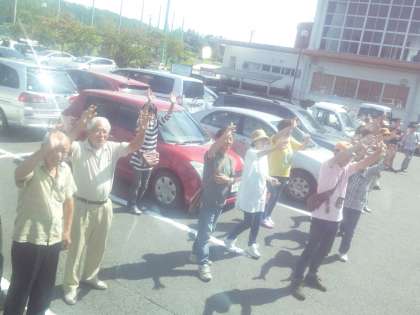 離村式後、受け入れ家庭の方々とお別れをし、見送りをしていただきました。大変お世話になりました。バスは、宇治に向かいます。