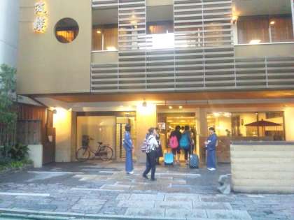 四条烏丸通りでバスを降車。本日の宿舎に到着しました。