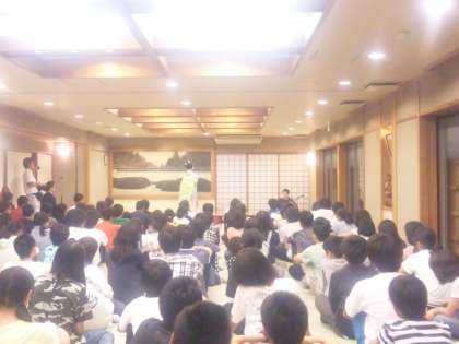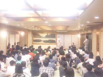 夕食後、伝統文化に触れる機会を設けました。舞妓さんの踊りを見せていただきました。その後、舞妓さんは、生徒達の質問に丁寧に答えてくださいました。