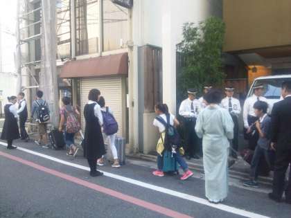 全班、無事旅館を出発しました。これからタクシー班が始まります。