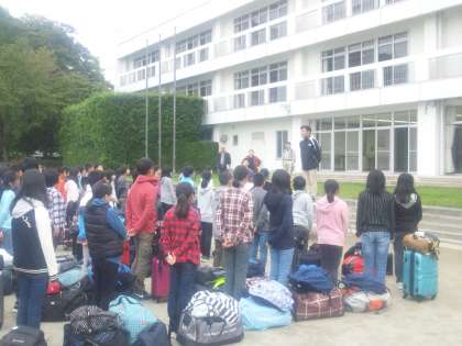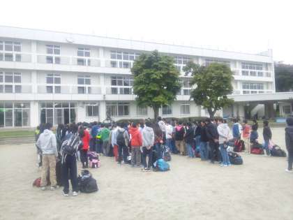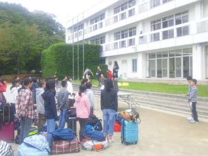 河口湖林間学園に到着しました。開園式の様子です。互いに協力し、充実した3日間を過ごすように、一人一人のがんばりが楽しみです。
