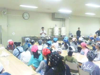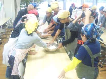 うどんづくりが始まりました。園の方から説明をお聞きしながらの作業です。協力して、楽しそうに作業が進みます。