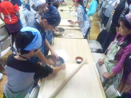 練った生地を寝かせている間に麺棒などを準備します。寝かせた生地をさらに練り、うどんのこしを出します。