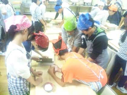 うどんづくりも最後の作業になりました。幅を揃えて丁寧に切ります。でき上がりはどうでしょうか?今日の夕食でいただきます。楽しみです。