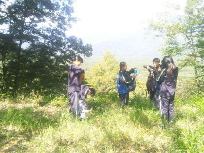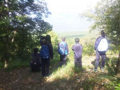 氷穴から紅葉台ドライブインの途中のオリエンテーリングの様子です。眼下に樹海がのぞめます。絶景です。