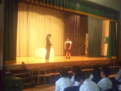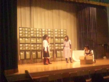 演劇部の発表は、「夢から醒めた夢」です。シリアスな場面あり、コミカルな場面あり、の劇です。