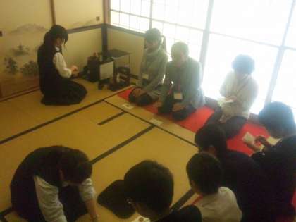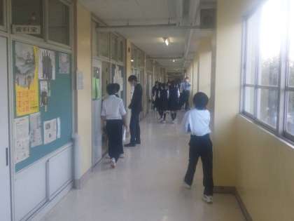 展示部門が始まりました。30の展示を見学します。PTAから一生懸命頑張る生徒達に横断幕をいただきました。茶道部や見学の様子です。