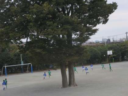 サッカー部の松沢中学校との練習試合の様子です。皆、真剣にボールを追っています。