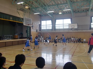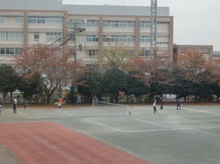 校庭では、ソフトテニス部、サッカー部の練習が行われ、体育館では、バスケットボール部が練習試合を行っています。2学期末考査を終え、休日の活動が、元気に行われています 。